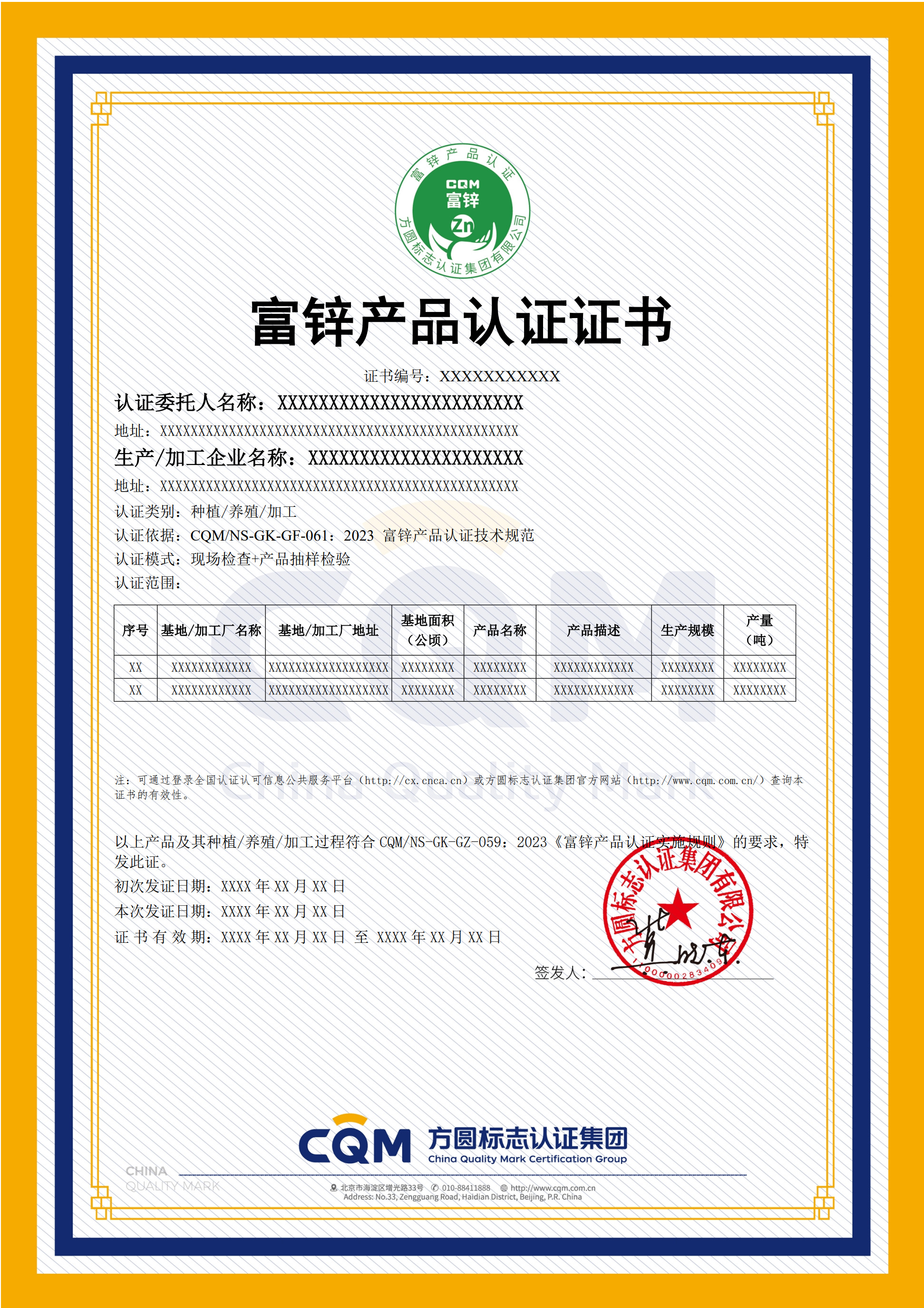 富锌产品认证