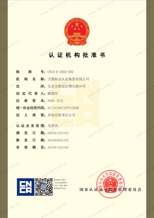 >国家认证认可监督管理委员会批准书