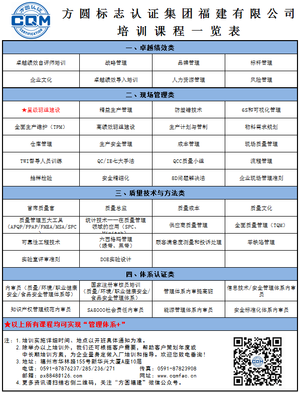 方圆福建2020年公开班培训计划(1月-12月)