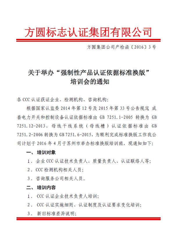 九游·jiuyou(中国)体育官方网站举办“强制性产品认证依据标准换版”培训会的通知