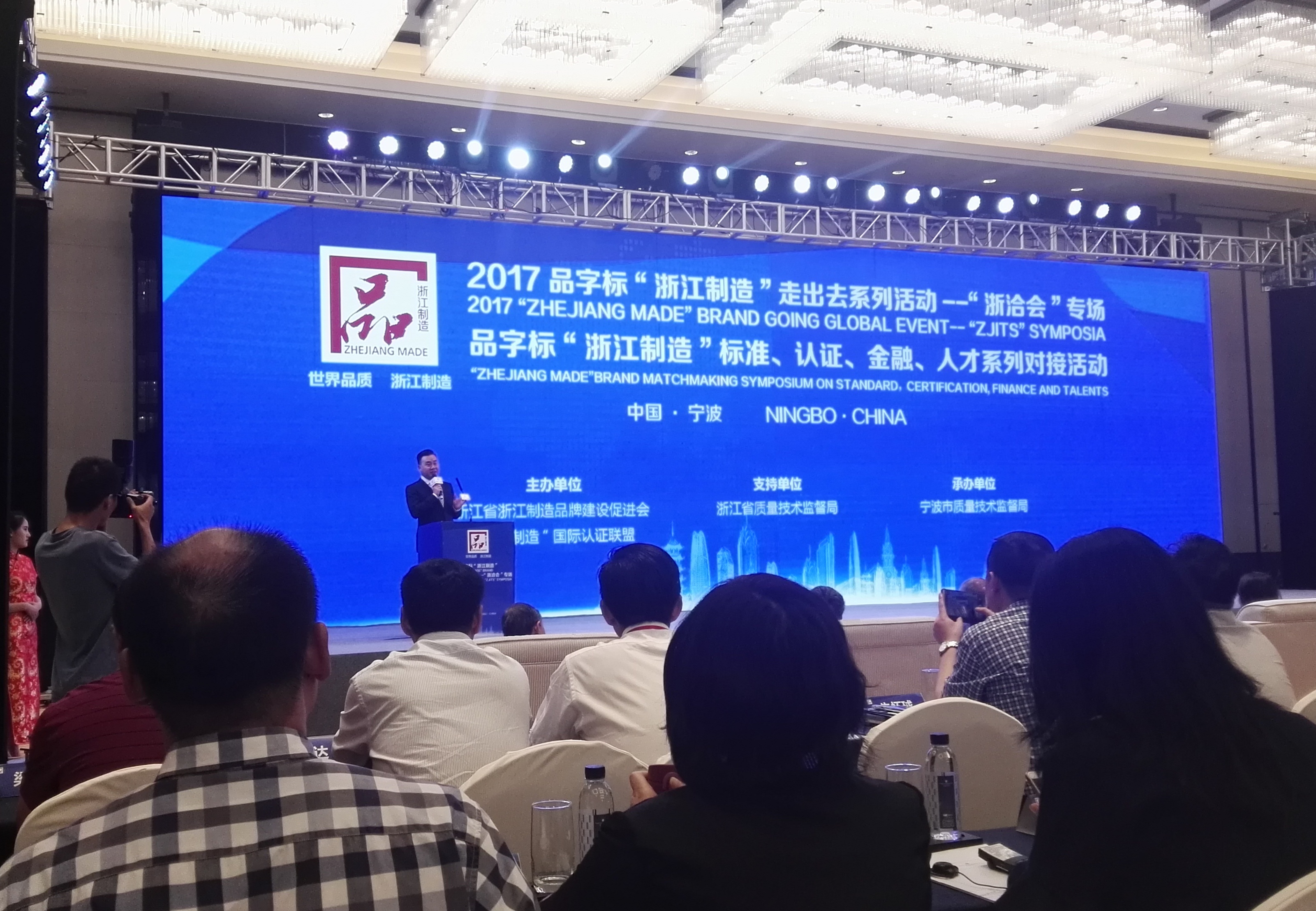 6月8日下午,品字标“浙江制造”走出去系列活动——“浙洽会”专场会在宁波举行。该活动由浙江省质量技术监督局指导,浙江省浙江制造品牌建设促进会、“浙江制造”国际认证联盟共同主办,宁波市质量技术监督局承办,是第十九届中国浙江投资贸易洽谈会、第十六届中国国际日用消费品博览会、第三届中国-中东欧国家投资贸易博览会(简称“三会”)中的一项重要活动。