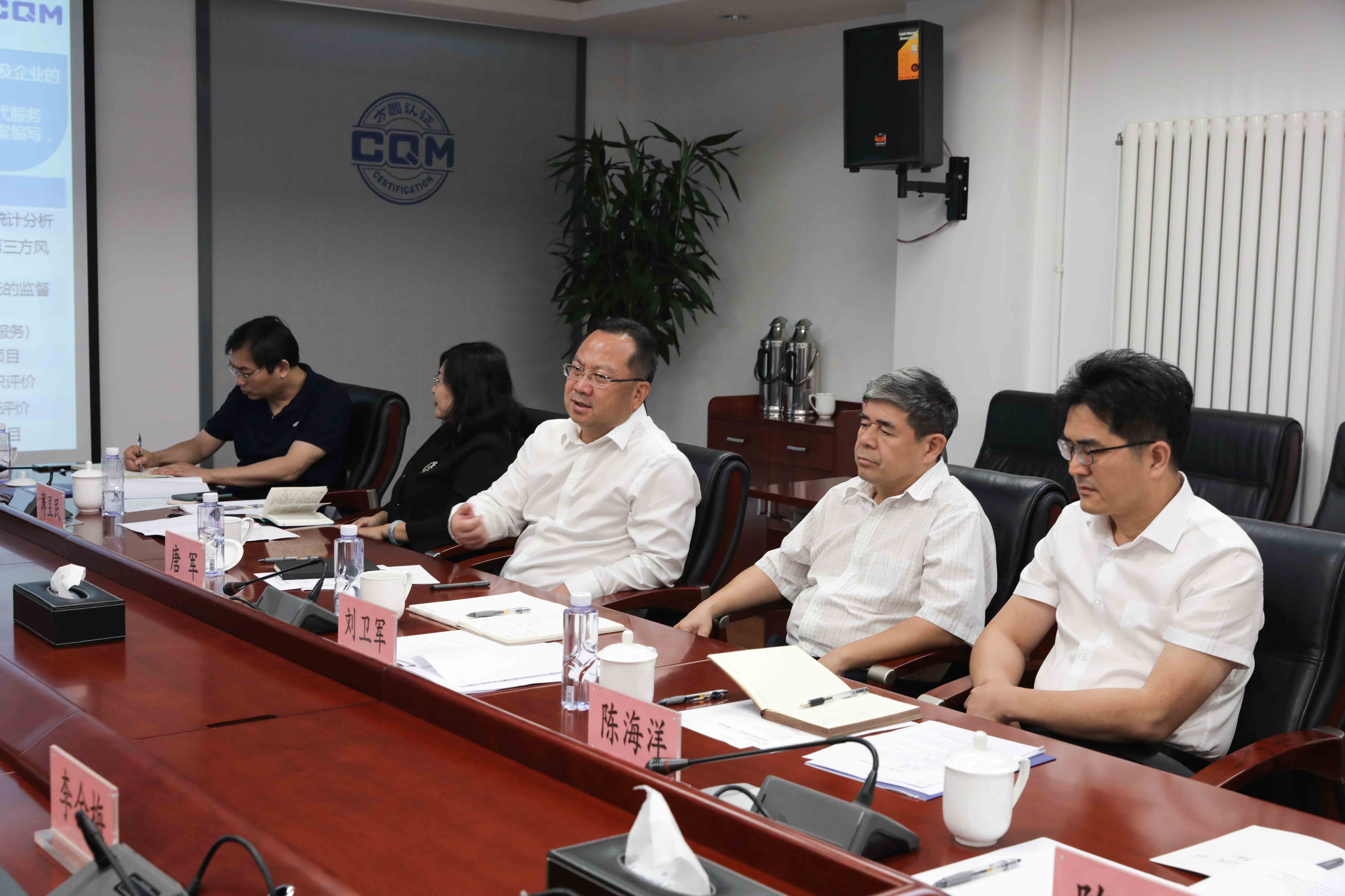 2021年9月13日,国家市场监管总局党组成员副局长唐军、认证监督管理司司长刘卫军、认证监督管理司副司长(正司级)薄昱民等一行领导莅临方圆标志认证集团进行小微企业质量提升工作调研和指导。方圆标志认证集团董事长兼总裁冀晓东、副总裁兼管理者代表刘险锋、副总裁董昕等全程陪同。