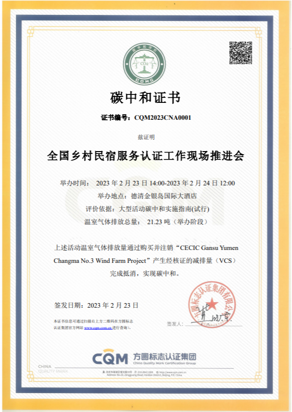 据悉,此次推进会是一次“零碳会议”。活动期间温室气体排放量通过购买并注销经核证的减排量(VCS)完成抵消,获得碳中和证书,实现碳中和。