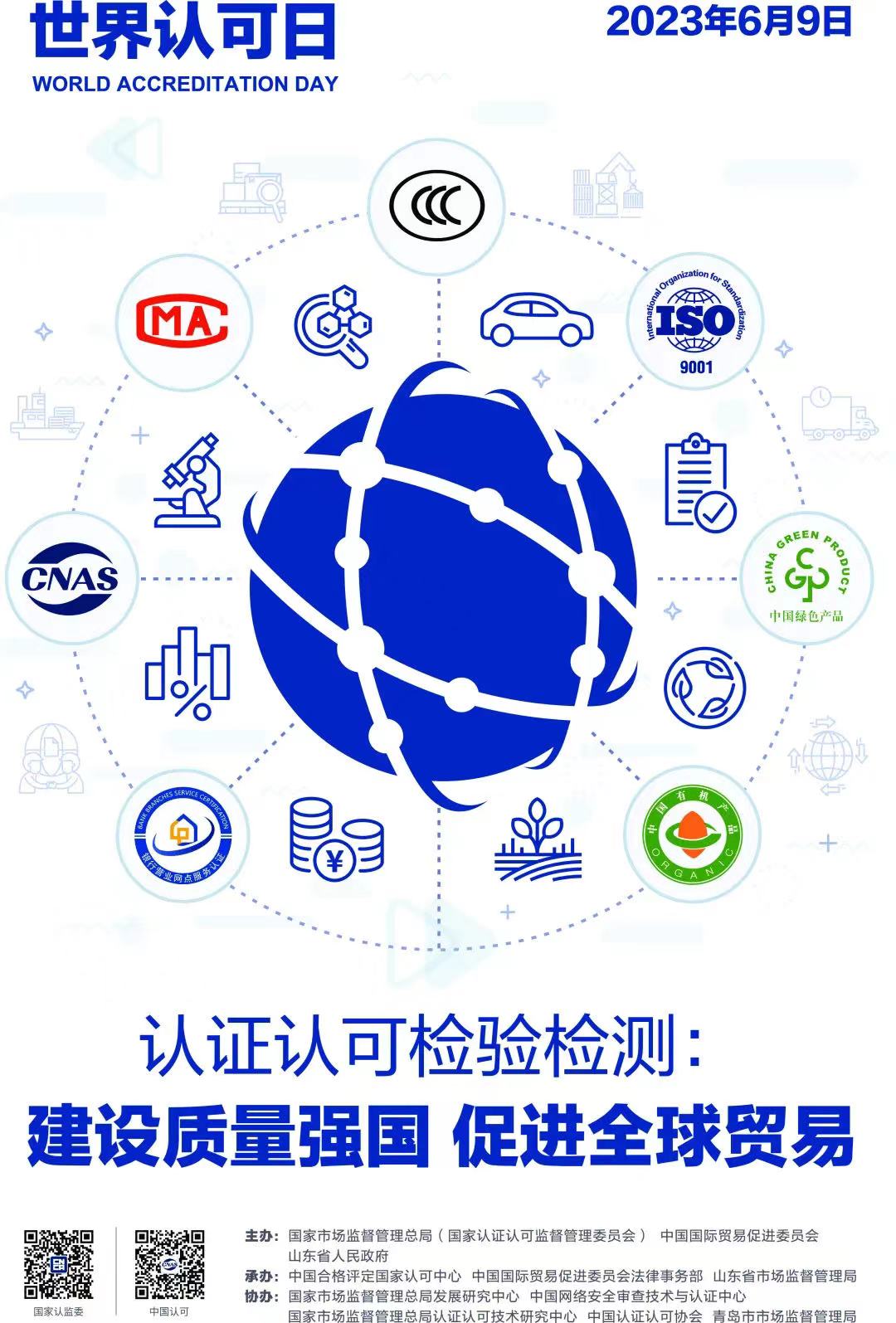 2023年6月9日是第16个“世界认可日”,是国际合格评定界的共同节日。今年“世界认可日”的国际主题是“认可:支持全球贸易的未来”,国内主题为:“认证认可检验检测:建设质量强国 促进全球贸易”。